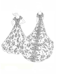 ***Please note the dress available in store is fully modest, shown as a sketch. For customization to be non-modest, the process may require more than five months to complete.***